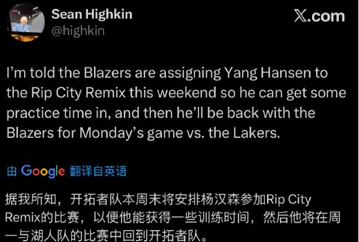 開拓者隊(duì)記Sean Highkin解釋了,開拓者就是為了讓楊瀚森收獲更多的訓(xùn)練時(shí)間,并且他將在周二與湖人的比賽中重回球隊(duì)。