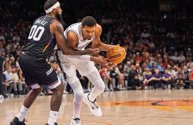 隨著馬刺和公牛紛紛輸球,新賽季迄今為止仍然保持不敗戰(zhàn)績(jī)的,也只剩下衛(wèi)冕冠軍雷霆而已。而破了圣城不敗金身的,并非傳統(tǒng)意義上的豪強(qiáng),而是僅僅排在西部第11名的太陽(yáng)。開(kāi)賽以來(lái)一路過(guò)關(guān)斬將、所向披靡的馬刺,在面對(duì)太陽(yáng)時(shí)全場(chǎng)被壓制,最終更是輸了兩位數(shù)。這樣的結(jié)果,和球隊(duì)核心文班亞馬全場(chǎng)運(yùn)動(dòng)戰(zhàn)14中4,僅僅取得9分不無(wú)關(guān)系。要知道,文班休賽期在少林進(jìn)修悟道后,新賽季迎來(lái)了現(xiàn)象級(jí)爆發(fā),場(chǎng)均得分超30分,只要他能發(fā)揮正常實(shí)力,即便最終沒(méi)能贏球,場(chǎng)面上也不至于輸?shù)萌绱穗y看。